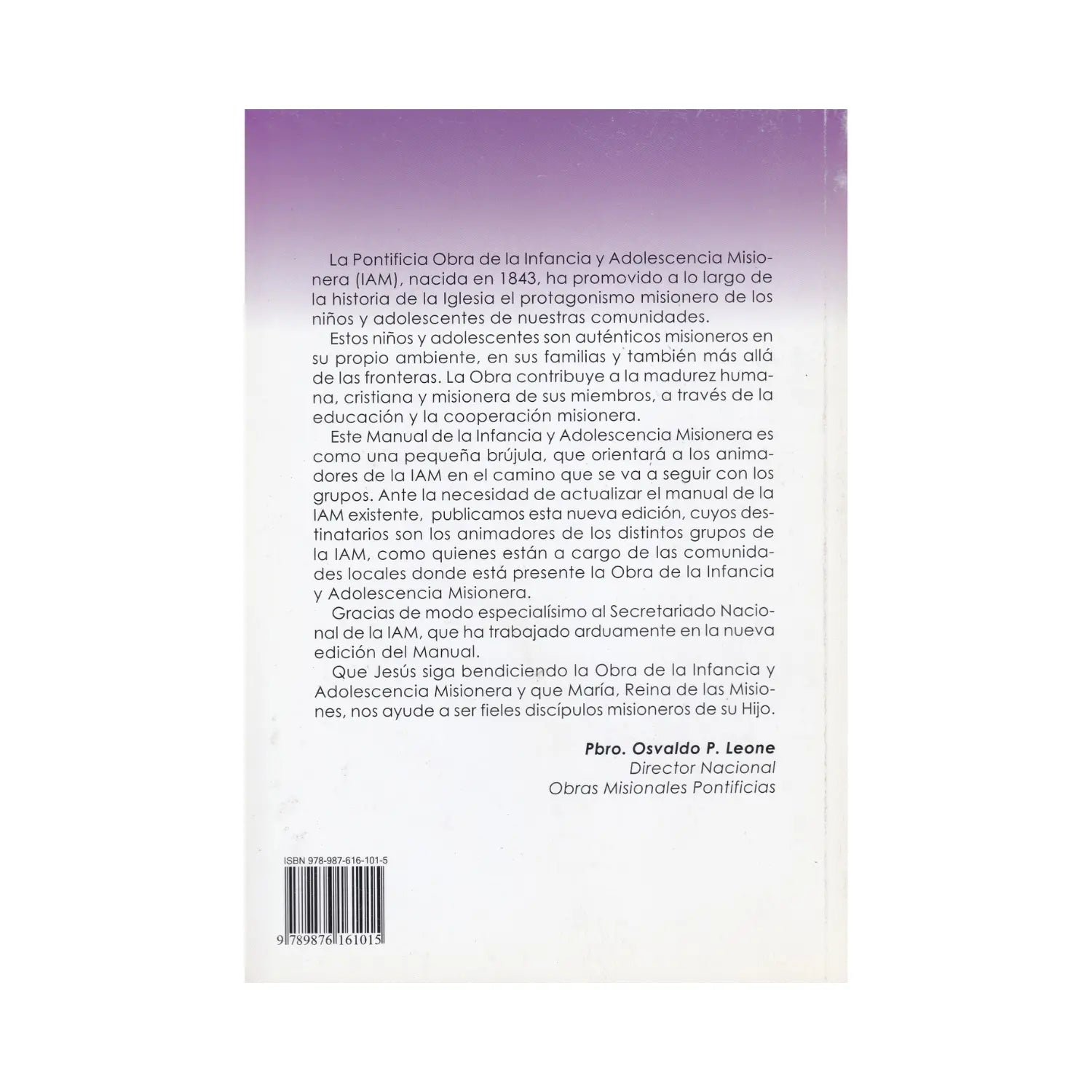 Este Manual de la Infancia y Adolescencia Misionera es como una pequeña brújula, que orientará a los animadores de la IAM en el camino que se va a seguir con los grupos. Ante la necesidad de actualizar el manual de la IAM existente, publicamos esta nueva edición, cuyos destinatarios son los animadores de los distintos grupos de la IAM, así como quienes están a cargo de las comunidades locales donde está presente la Obra de la Infancia y Adolescencia Misionera.