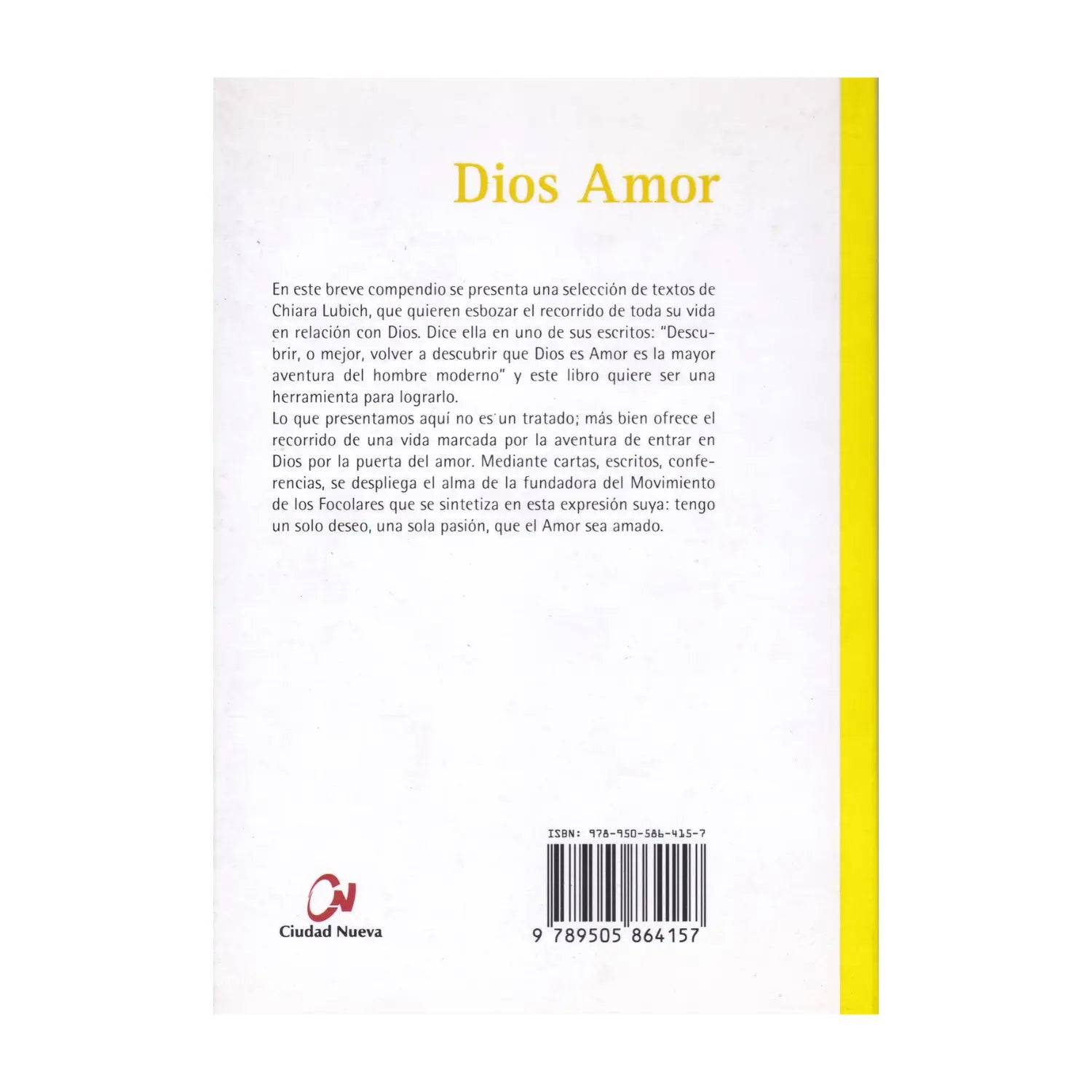 What we present here is not a treatise: rather, it offers the journey of a life marked by the adventure of entering God through the door of love. Through letters, writings, and lectures, the soul of the founder of the Focolare movement unfolds, summed up in this expression of hers: I have only one desire, one passion, that Love be loved.